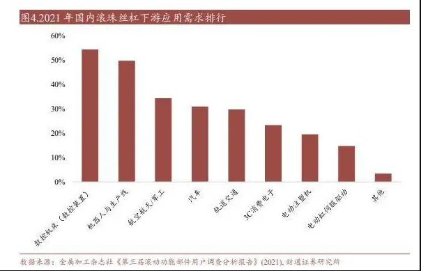 在下游應(yīng)用場(chǎng)景中,目前國內(nèi)數(shù)控機(jī)床、機(jī)器人與生產(chǎn)線以及航空航天與軍工為滾珠絲杠最主要應(yīng)用去向。隨著全球智能化產(chǎn)業(yè)鏈的不斷擴(kuò)張和自動(dòng)化在各領(lǐng)域的不斷深入,人型機(jī)器人、高檔數(shù)控機(jī)床、電動(dòng)機(jī)械等下游領(lǐng)域有望不斷為包括滾珠絲杠在內(nèi)的滾動(dòng)功能部件提供市場(chǎng)增量,從而擴(kuò)大滾動(dòng)功能部件的總市場(chǎng)空間。